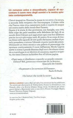In una calda notte di primavera, una giovane donna cammina nel centro esatto della strada provinciale. E nuda e coperta di sangue. A stagliarla nel buio, i fari di un camion sparati su di lei. Quando, poche ore dopo, verrà ritrovata morta ai piedi di un autosilo, la sua identità verrà finalmente alla luce: è Clara Salvemini, prima figlia della più influente famiglia di costruttori locali. Per tutti è un suicidio. Ma le cose sono davvero andate cosi? Cosa legava Clara agli affari di suo padre? E il rapporto che la unisce ai tre fratelli - in particolare quello con Michele, l'ombroso, il diverso, il ribelle - può aver giocato un ruolo determinante nella sua morte? Le ville della ricca periferia barese, i declivi di ogni rapida ascesa sociale, una galleria di personaggi indimenticabili, le tensioni di una famiglia in bilico tra splendore e disastro: utilizzando le forme del noir, del gotico, del racconto familiare, scandite da un ritmo serrato e da una galleria di personaggi e di sguardi che spostano continuamente il cuore dell'azione, Nicola Lagioia mette in scena il grande dramma degli anni che stiamo vivendo.
